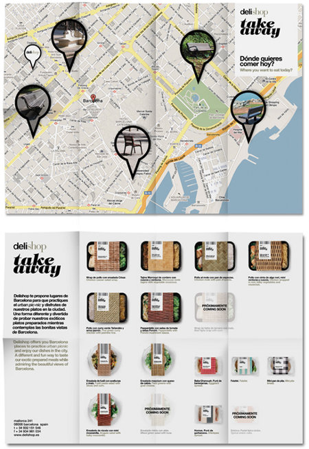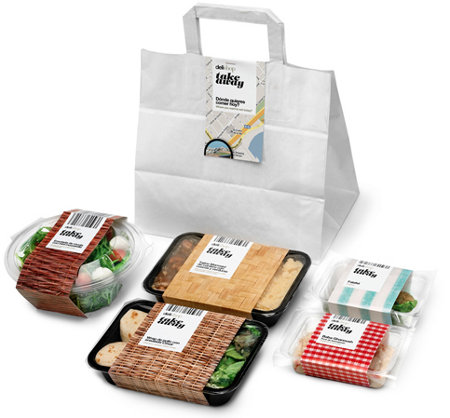 La nouvelle gamme de plats préparés “Take Away“ de la marque Delishop est basée sur l’idée du “pique-nique urbain”. Le concept du packaging alimentaire, imaginé par le designer graphique espagnol Enric Aguilera, repose sur l’association d’informations textuelles simples à des images de matières évoquant soit l’univers de la table et de la gastronomie, soit les pays d’origine des différents plats.