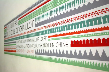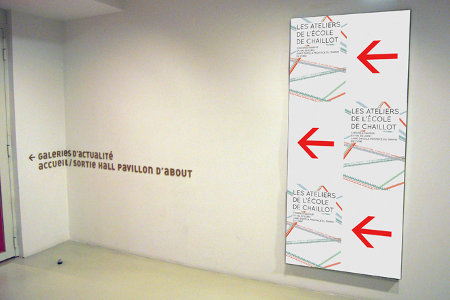 Composé de deux graphistes (Claire Untersteller et Mélanie Maxin), L’Atelier Beau/Voir a réalisé il y a quelques mois la signalétique d’une exposition organisée par l’Ecole de Chaillot : panneaux, cartels et signalétique directionnelle. Un travail basé sur un choix élégant de couleurs, et des séquences de petits visuels tout en rythme.