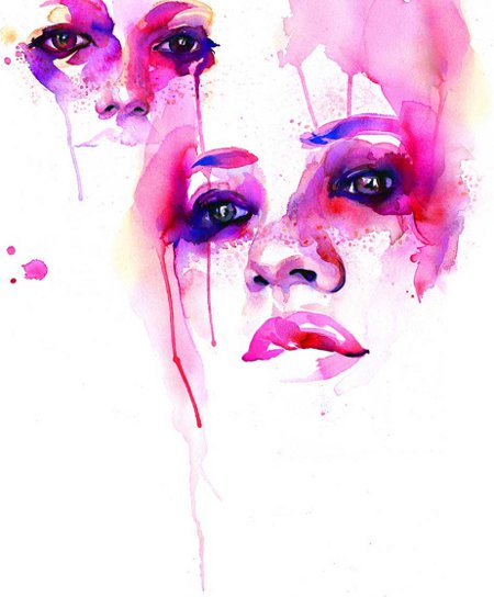 Marion Bolognesi est une créatrice vivant et travaillant à New York, où elle partage son temps entre des projets de design d’accessoires et une passion personnelle pour l’illustration. Le travail qu’elle mène dans ce contexte, expressif et coloré, privilégie l’aquarelle et la peinture à l’eau. Il met en scène des visages dessinés partiellement (ils se concentrent principalement sur le dessin du regard et de la bouche), riches en couleurs, qui semblent “ruisseler”.