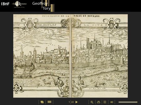 “Geoffroy Tory (vers 1480-1533) est une figure singulière de la Renaissance française. Editeur, traducteur, libraire et imprimeur, il s’est passionné pour le livre dans tous ses aspects -typographie, mise en page, illustration et reliure, mais aussi orthographe, grammaire et ponctuation. C’est lui qui a introduit la cédille dans la typographie moderne du français. Il a joué un rôle majeur dans l’anoblissement de la langue voulu par les Valois. François Ier sut l’apprécier et en fit son imprimeur officiel. S’appropriant tous les répertoires décoratifs, Tory a créé une relation nouvelle entre le texte et l’image, et a totalement renouvelé la présentation du livre imprimé français. Marqué par l’influence de Vinci et Dürer, ses contemporains, amoureux des lettres, il a mis en œuvre d’extraordinaires alphabets imaginaires dans le Champ fleury, véritable manifeste de son art. Humaniste et graphiste à la fois, il fut un précurseur du livre moderne.”