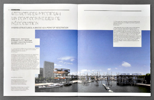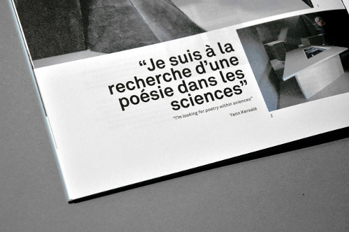 A l’intérieur de la revue, un contenu en « créneaux » permet le découpage et la mise en avant des informations, d’une manière très graphique, établissant ainsi un beau dialogue avec les photos et les projets présentés.