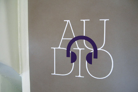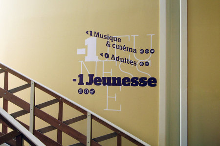 La signalétique fait le pari d’un univers visuellement composite, jouant sur la graisse, l’italique et la taille des polices de caractères ainsi que leur orientation.