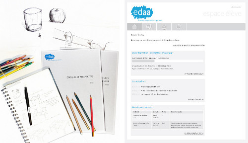 L’école EDAA, spécialisée dans l’enseignement des arts appliqués et du design à distance, propose différents cursus et notamment une formation en graphisme réalisable en une douzaine de mois environ. Celle-ci comporte un ensemble de cours en ligne et papier, ainsi que de multiples exercices et travaux pratiques à réaliser.