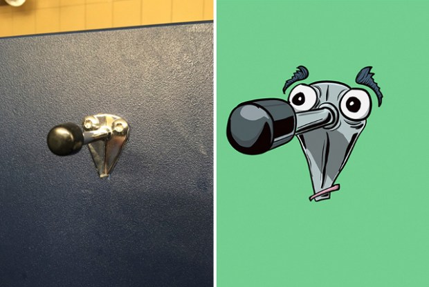Des illustrations qui s’inspirent de son environnement avec une bonne dose d’imagination et d’humour. Pire, après avoir vu ses créations, il y a fort à parier que le visage dans la photo associée va vous sauter aux yeux.