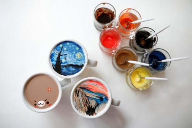 Le barista sud-coréen Lee Kang-Bin propulse l’art du café au niveau supérieur en reproduisant des toiles de maître à la surface des cafés qu’il sert dans son café de Séoul. L’artiste aidé de minuscules pinceaux et de petites cuillères a notamment reproduit « La nuit étoilée » de Vincent van Gogh et « Le cri » d’Edvard Munch à l’aide de crème épaisse teinté avec des colorants alimentaires.