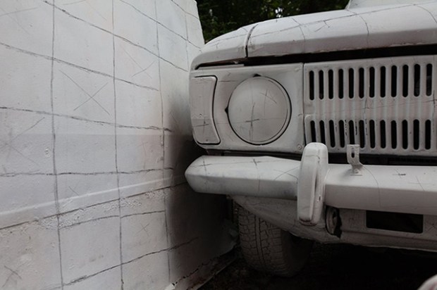 Il leur a suffit de redessiner les contours des différents carrées suivant leurs formes projetées pour ensuite les peindre directement sur le container et la voiture. Un passage de la 3D à la 2D très surprenant, qui replace dans le réel une vision pourtant banale dans l’oeil d’un graphiste habitué à son moniteur.