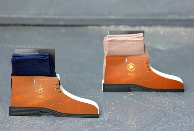 Une idée simple et ingénieuse qui permet en un clin d’oeil de s’imaginer le résultat une fois porté. Il a décliné son concept avec différent style de chaussures, de la sneaker au talon-haut en passant par la chaussure de ville classique. Un packaging très astucieux et innovant qui a su séduire son client, puisqu’il est actuellement utilisé au Kirghizistan, berceau de Captain Cotton comme du designer.