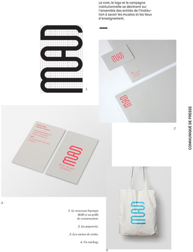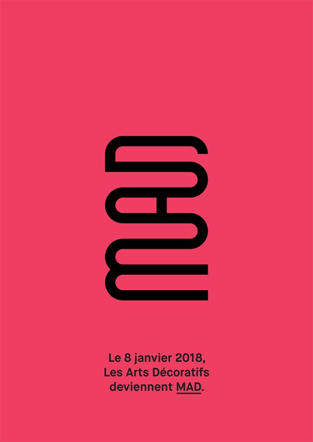 A l’occasion de la nouvelle année, les Arts Décoratifs de Paris dévoilent leur nouvelle identité graphique qui sera effective à compter du 8 Janvier prochain. Les Arts Décoratifs (qui réunissent le Musée des Arts Décoratifs, la bibliothèque, le musée Nissim de Camondo, les Ateliers du Carrousel et l’école Camondo) deviendront MAD, pour accroître leur visibilité auprès du grand public en France comme à l’international. Pour effectuer cette mue et penser son nouveau logo, l’institution a fait appel à l’agence de communication BETC pour souligner sa singularité dans le paysage culturel parisien.