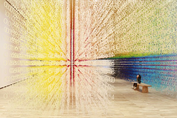 En superposant ces deux composantes, l’installation a pour but d’offrir une visualisation de l’écoulement du temps. Composée d’environ 120 000 chiffres de « 0 » à « 9 » et d’un symbole « : », les bandes de papier colorées se suspendent en grilles tridimensionnelles dans lesquelles le visiteur est amené à se déplacer. L’installation représente la couleur du levé au coucher du soleil et pour la première fois l’artiste a utilisé la couleur noir dans son travail.