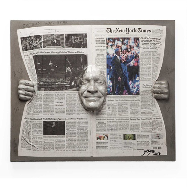 Lors de la dernière édition d’Urban Art Fair, Frag a présenté des collaborations avec de grands noms de l’art urbain, comme Chanoir, Gregos, Miss. Tic, ou encore le Sonneur (dont nous vous parlons régulièrement ici).