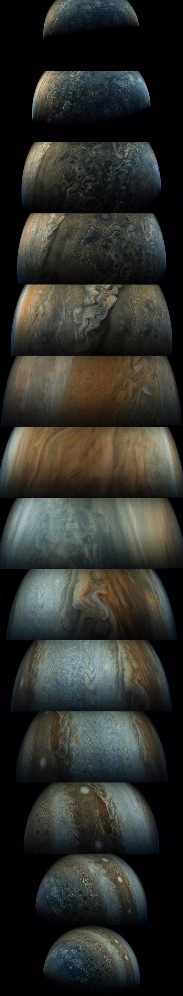 En orbite autour de Jupiter depuis l’été 2016, la sonde spatiale de la NASA, Juno, vient de nous livrer une nouvelle série de photographies de la plus grosse planète du système solaire. Alors que la mission de Juno touche à sa fin (il est prévu qu’elle soit consumée par l’atmosphère de la planète en juillet prochain), elle nous offre des clichés aux couleurs vives qui pourraient être des panaches de soufre et de gaz contenant du phosphore provenant de la zone la plus chaude de la planète. A découvrir en images dans la suite de l’article :