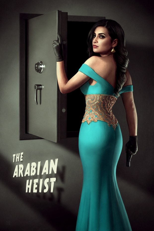 Habitué des exercices de style, l’illustrateur américain Astor Alexander s’est amusé à replacer les princesses de l’univers Disney dans le monde des polars d’après guerre. En reprenant les codes graphiques des affiches de films policier des années 50 et des magazines Pulp, il transforme les héroïnes en pin-up armées.