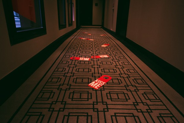 L’exposition « Rear Windows » se déroule jusqu’au 15 Mars 2019 et permet de découvrir le style minimal du Sonneur dans un environnement inattendu mais finalement très en phase avec les récits qu’il nous suggère. Les codes hôteliers sont détournés, les surprises nombreuses, ici une projection vidéo d’un porte imaginaire, là une sonnette Mon Héros, ou encore une lettre d’amour déposée sur une table… Une occasion rêvée pour découvrir le travail de l’artiste mis en scène dans les couloirs et salon de l’hôtel, comme un jeu de piste amoureux et romantique.