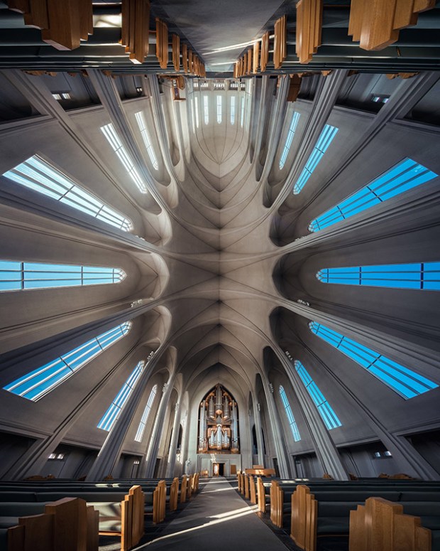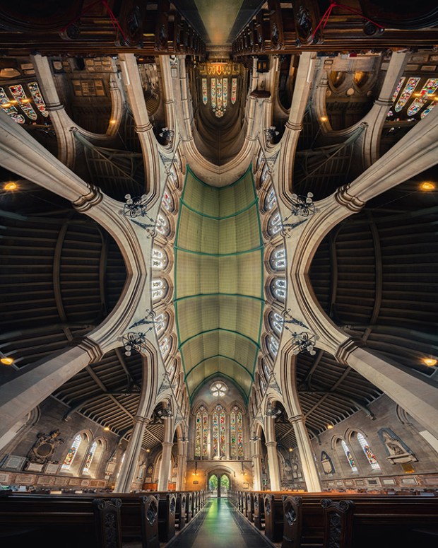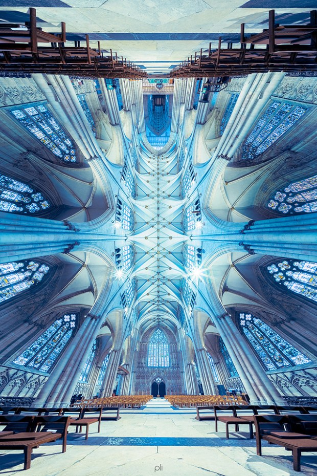 Basé à Londres, le photographe Peter Li utilise la photographie panoramique pour introduire une nouvelle perspective à l’architecture des églises à travers le monde. Déjà époustouflante, l’architecture s’inscrit dans une nouvelle dimension faite de symétries parfaites et d’une profondeur qui semble presque infinie et irréelle. En orientant son objectif vers les plafonds et leurs colonnes de support, le photographe place le spectateur au centre de l’édifice.