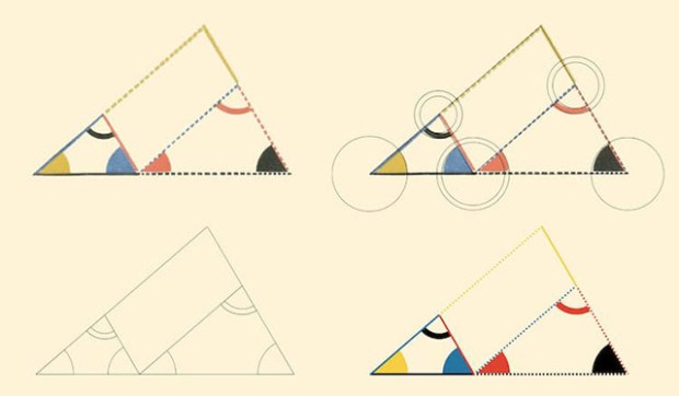 Que diriez-vous vous de vous plonger dans un ouvrage né de la rencontre de l’art et des mathématiques ? Edité pour la première fois en 1847, « Éléments d’Euclide » est un livre de l’ingénieur et mathématicien Oliver Byrne qui proposait une esthétique totalement novatrice pour présenter les travaux d’Euclide. Un style graphique qui combinait des couleurs primaires à la précision mathématique dans mélange de couleurs, de formes et de géométries !