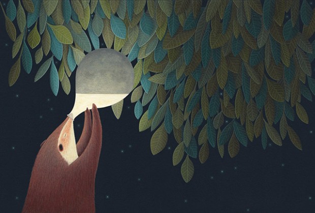 Pour illustrer le conte traditionnel « Noche Antigua », l’artiste David Alvarez a utilisé des techniques et des inspirations typiques des cultures latino-américaines. Dans cet ouvrage de littérature pour enfant, un lapin et un opossum œuvrent ensemble pour maintenir la Lune et le Soleil. Pour mettre en image cette histoire très poétique, l’illustrateur a misé sur des formes simples, féeriques, des tons de couleurs dégageant un grand calme.