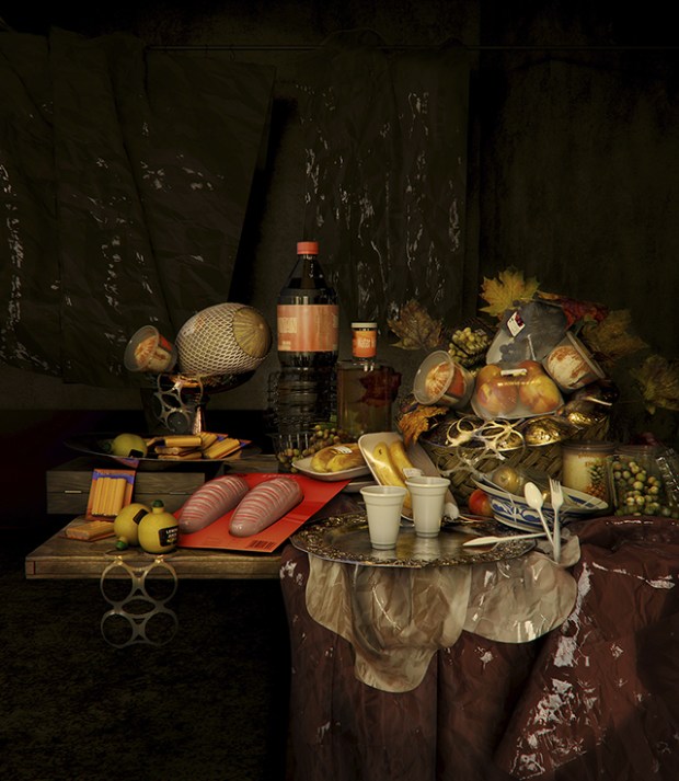 Une réinterprétation de certaines des natures mortes les plus célèbres qui entend nous alerter sur les dérives de notre société de consommation. Ainsi, des pommes dans des emballages plastiques s’invitent dans les toiles de Caravage, Monet ou Van Beyeren.