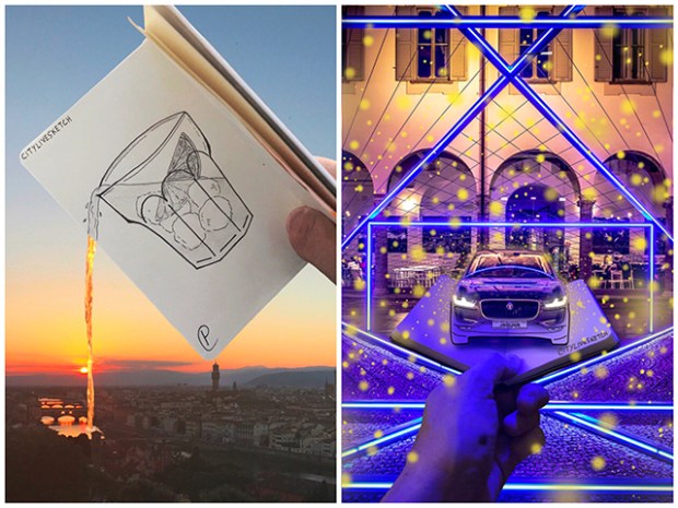 CityLiveSketch est un projet artistique créé par l’illustrateur italien Pietro Cataudella. Vivant actuellement à Pise, en Toscane, il a démarré ce projet avec l’ambition de mettre en valeur le monde qui nous entoure en mêlant photographies réelles et illustrations. Sur son site CityLiveSketch et son compte instagram, l’artiste réalise des détournements aussi drôles que réussis sur le plan des techniques d’illustration et nous vous proposons un petit tour d’horizon de ses dernières créations.