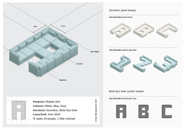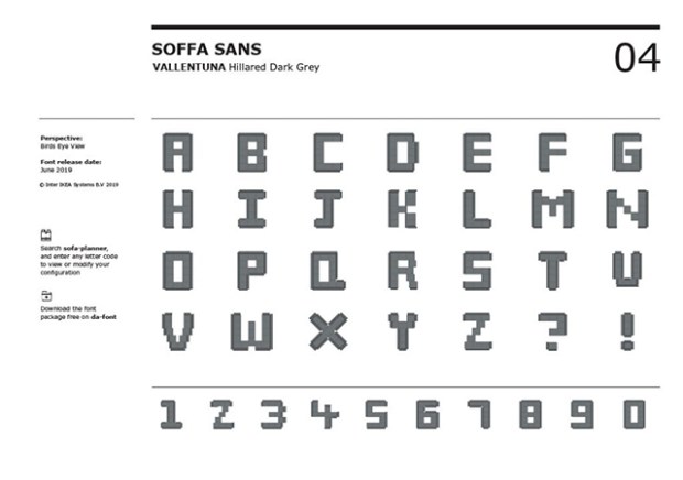 Développée par l’agence de création graphique Proximity London, la typographie Soffa Sans a été créée à partir de l’outil en ligne de création de canapés d’IKEA. Cette police de caractères, présentée par le géant suédois comme la typographie la plus confortable du monde est sans doute aussi la plus chère, car si tous les éléments qui la composent était réellement produits, la note s’approcherait des 135000 dollars !