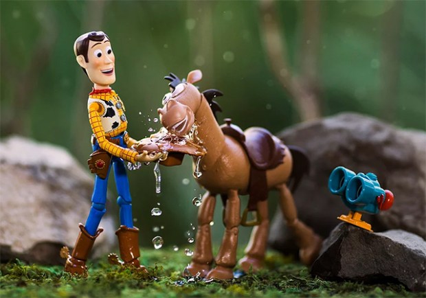 Dernièrement, Disney a engagé le photographe pour créer des scènes surréalistes à partir de leurs franchises iconiques comme Toy Story et Star Wars. Dans ses clichés, il utilise des effets comme des éclaboussures de liquide et des retouches numériques avec Photoshop pour donner vie aux personnages. Pour réaliser ces 60 secondes de vidéo, pas moins de 6 heures de tournages auront été nécessaires !