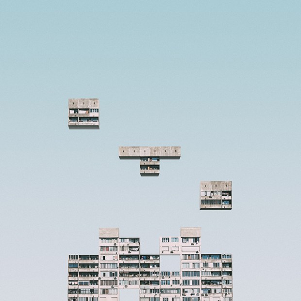Photographe bulgare installé à Paris, Mariyan Atanasov a réalisé une série de clichés très originale et baptisée « Urban Tetris« . En arpentant sa ville natale, Sofia, l’artiste a promené son objectif vers les bâtiments au style architectural brutaliste qui parsèment la cité. Après avoir nettoyé ses photographies des éléments perturbateurs comme les lignes électriques ou les nuages en utilisant la retouche numérique, il s’est inspiré du célèbre jeu Tetris pour décomposer les édifices selon les formes des pièces du jeu vidéo. Le résultat est une série à mi-chemin entre la photographie d’architecture et le surréalisme. En décomposant les bâtiments, dans ces images totalement vierges d’autres détails, il fabrique les pièces emblématiques du jeu créé en 1984 en utilisant des morceaux d’architecture.