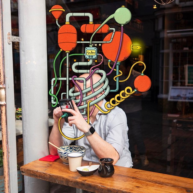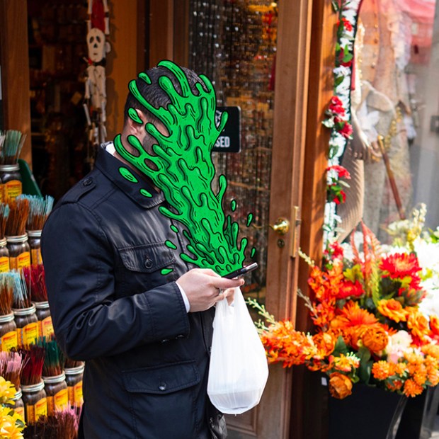 Le photographe Ruskin Kyle a donc promené son objectif sur des anonymes perdus dans l’écran de leur smartphone. L’illustrateur a par la suite dessiné sur les clichés pour faire apparaître tentacules, tâches d’huile ou machines infernales qui coupent totalement les sujets du monde qui les entoure. Au début du projet, le dessin masquait totalement le téléphone, mais ce résultat ne satisfaisait pas les deux artistes. En laissant apparent l’appareil électronique, le message visant à dénoncer la place envahissante qu’ont pris les smartphones était bien plus clair et percutante.