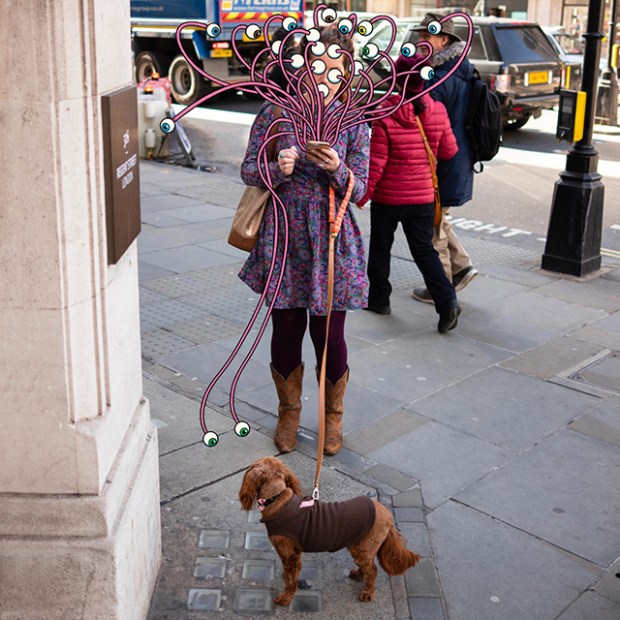 Presque tous les matins, l’illustrateur britannique Andrew Rae va se promener à Hampstead Heath, un grand parc londonien pour y puiser l’inspiration. Au fil de ses promenades, il a été surpris par l’analogie des personnes promenant leur animal de compagnie et de celles utilisant leur smartphone. Il lui est alors venu l’idée de faire émerger des écrans des animaux fantastiques, qui nécessitent autant d’attention qu’un chien. Un projet très créatif et grinçant qui allie photographie et illustration.
