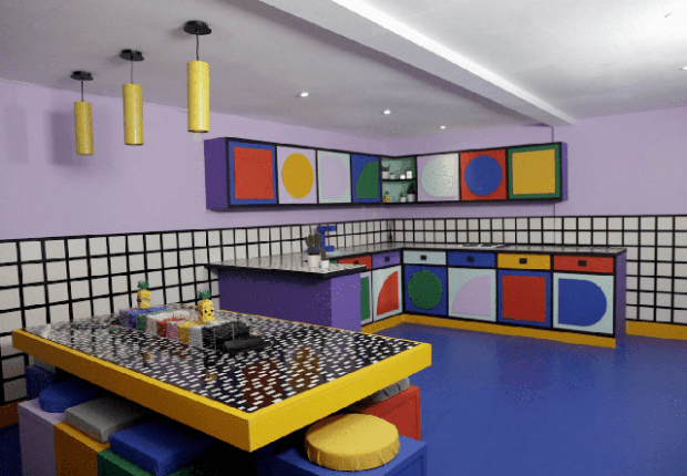 Designer au style graphique et coloré, qui nous évoque le mouvement Memphis, Camille Walala a été contactée par la marque danoise dans une opération de communication pour promouvoir une nouvelle gamme de LEGO arrondis. C’est donc au cœur du centre commercial de la gare de King’s Cross, à Londres, que “House of Dots” est née. C’est pour son univers graphique si particulier que l’artiste a été invitée à jouer avec les formes géométriques et très colorées que ces nouveaux LEGO permettent de créer. A l’intérieur, le plan nous permet de découvrir 5 pièces bien distinctes, une cuisine, un salon, une chambre, une salle de bain et… une discothèque !