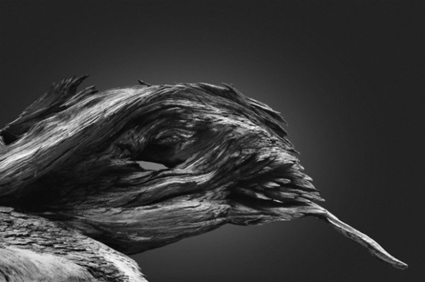 Savez-vous ce qu’est la paréidolie ? Il s’agit d’une tendance instinctive qui va amener notre cerveau à trouver des formes familières dans des images désordonnées, notamment à voir des visages là où il n’y en a pas, comme dans les nuages par exemple. Le travail de ce photographe en est la parfaite illustration et ces oiseaux et animaux fantastiques semblent vivre dans ces morceaux bois tortueux. L’effet est renforcé par une utilisation exclusive de la photographie en noir et blanc pour ces photographies animalières d’un genre particulier !