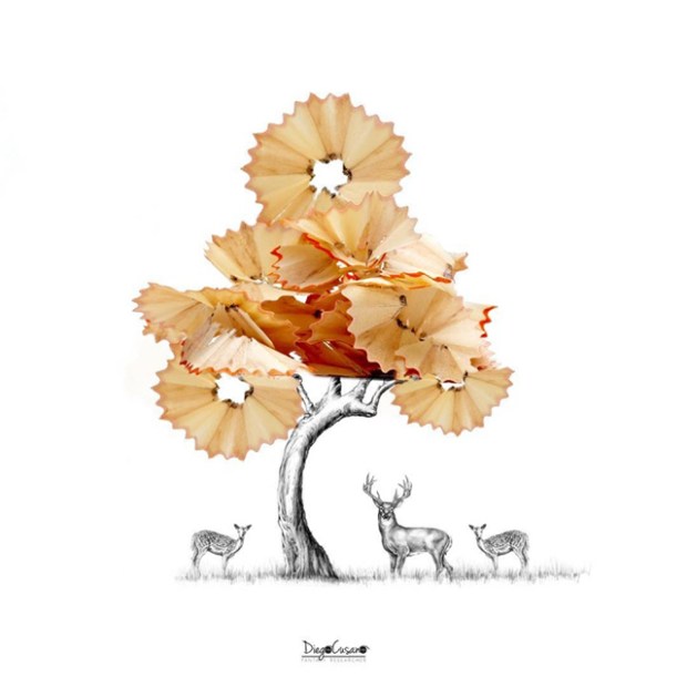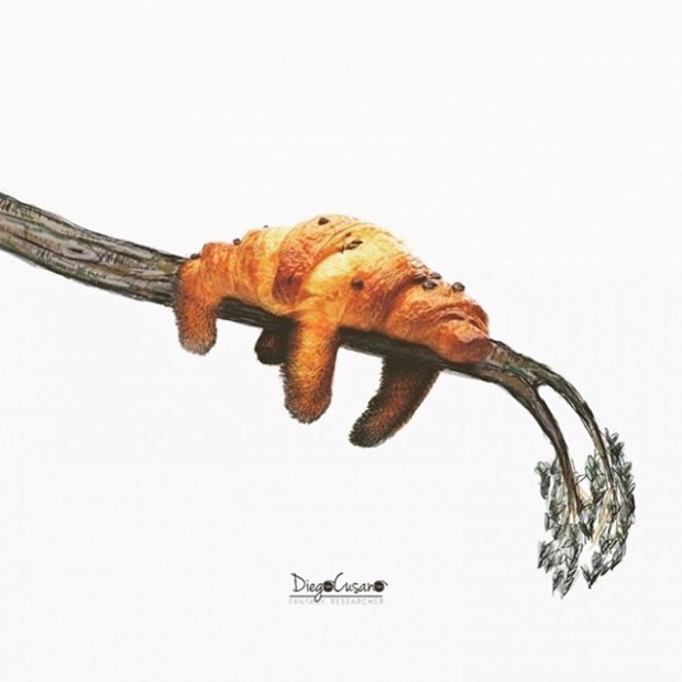 Originaire d’Italie, l’artiste Diego Cusano a un parcours atypique. D’abord musicien, il a suivi son rêve en s’inscrivant dans une formation d’illustrateur. En 2013, il commence à expérimenter la technique du collage en rassemblant des dessins au crayon et des natures mortes, des illustrations et des compositions qu’il publie sur Instagram où il cumule désormais plus de 200.000 followers ! Dans ses illustrations très créatives, il met en scène des aliments (ou des objets du quotidien) pour mieux les détourner grâce à sa technique de dessin.