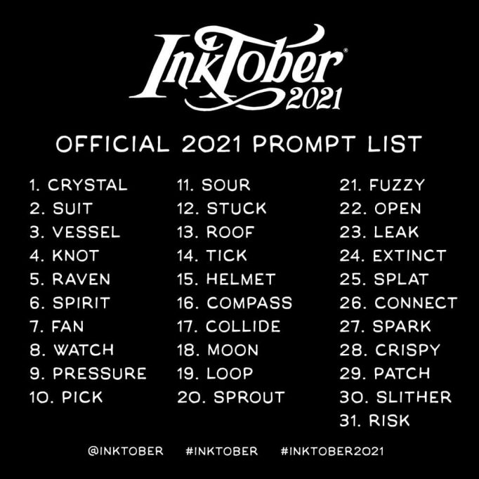 Préparez vos crayons, stylos, marqueurs, aquarelles, lancez votre logiciel de création graphique, branchez votre tablette graphique, créatifs de tous bords, que vous soyez illustrateurs, graphistes, peintres (même en bâtiment 😉 ), sculpteurs ou de toute autre discipline artistique, Inktober 2021 commence ! Le défi qui va vous demander de créer une œuvre sur une thématique imposée tous jours du mois d’octobre est de retour. Ouvert à tous, que vous soyez débutant, en formation, professionnel, ce mouvement ne pourra que vous faire progresser !