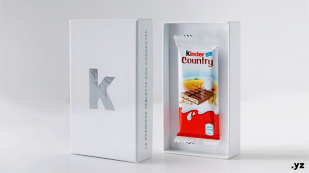 La semaine dernière se déroulaient les journées sans portables. C’est dans ce contexte que Kinder a lancé sa nouvelle campagne de publicité basée sur une « innovation » technologique : la première tablette non connectée. Une campagne parodique et très réussie qui s’est déclinée sur de nombreux supports. Ce sont les créatifs de l’agence de la jeune agence de publicité parisienne YZ qui sont à l’origine de cette campagne très efficace.
